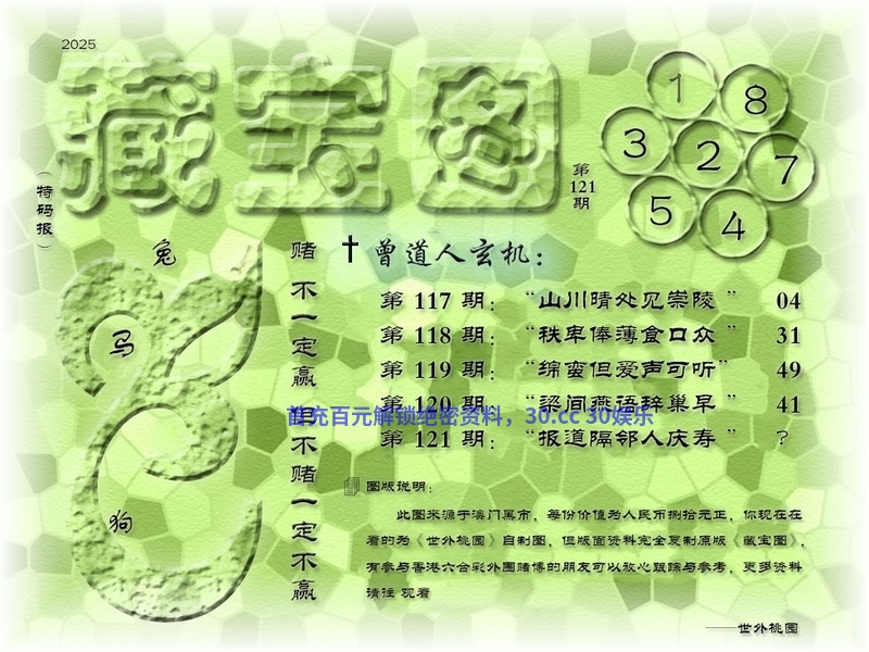 124期藏宝图:【资料正在更新中】 浅解:资料正在更新中 综合生肖:资料正在更新中 |